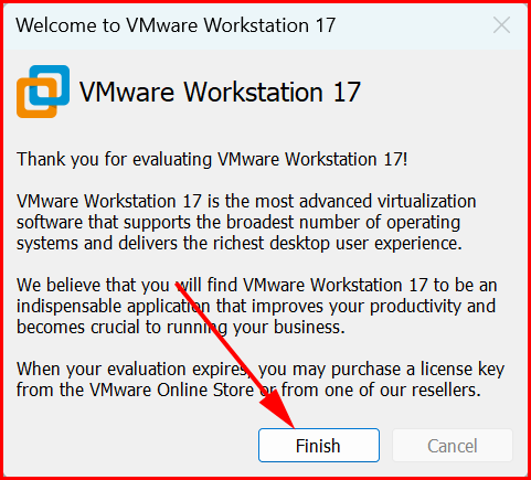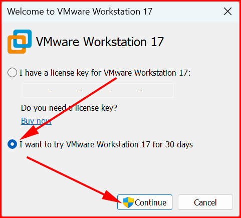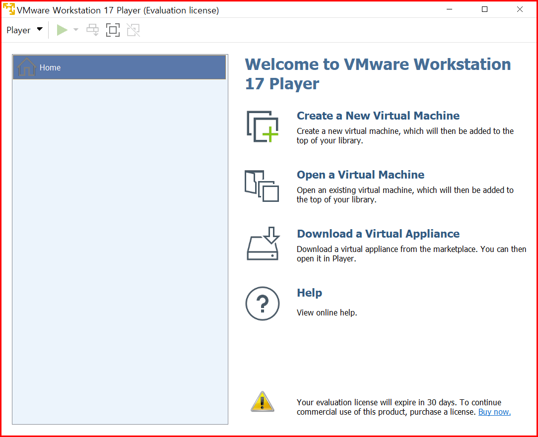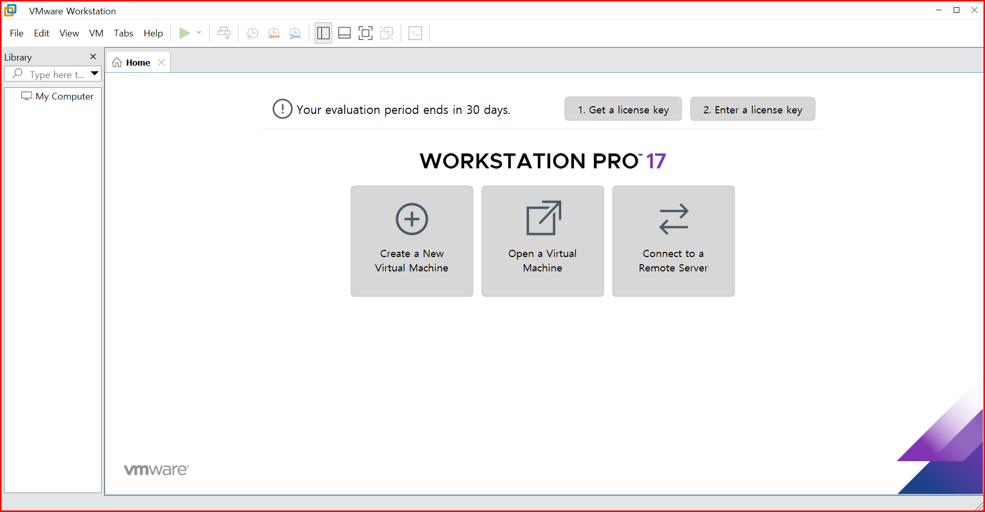 'VMware Workstation Pro 평가판'은 30일 동안만 사용할 수 있는데 반해, 함께 설치된 'VMware Workstation Player'는 사용기간의 제한이 없습니다. 주로 Player를 사용하고 네트워크 설정과 스냅숏이 필요한 경우에 Pro를 사용합니다. 30일이 지나면 Pro로 가상머신을 부팅할 수는 없지만, 네트워크 설정과 스냅숏은 가능합니다.