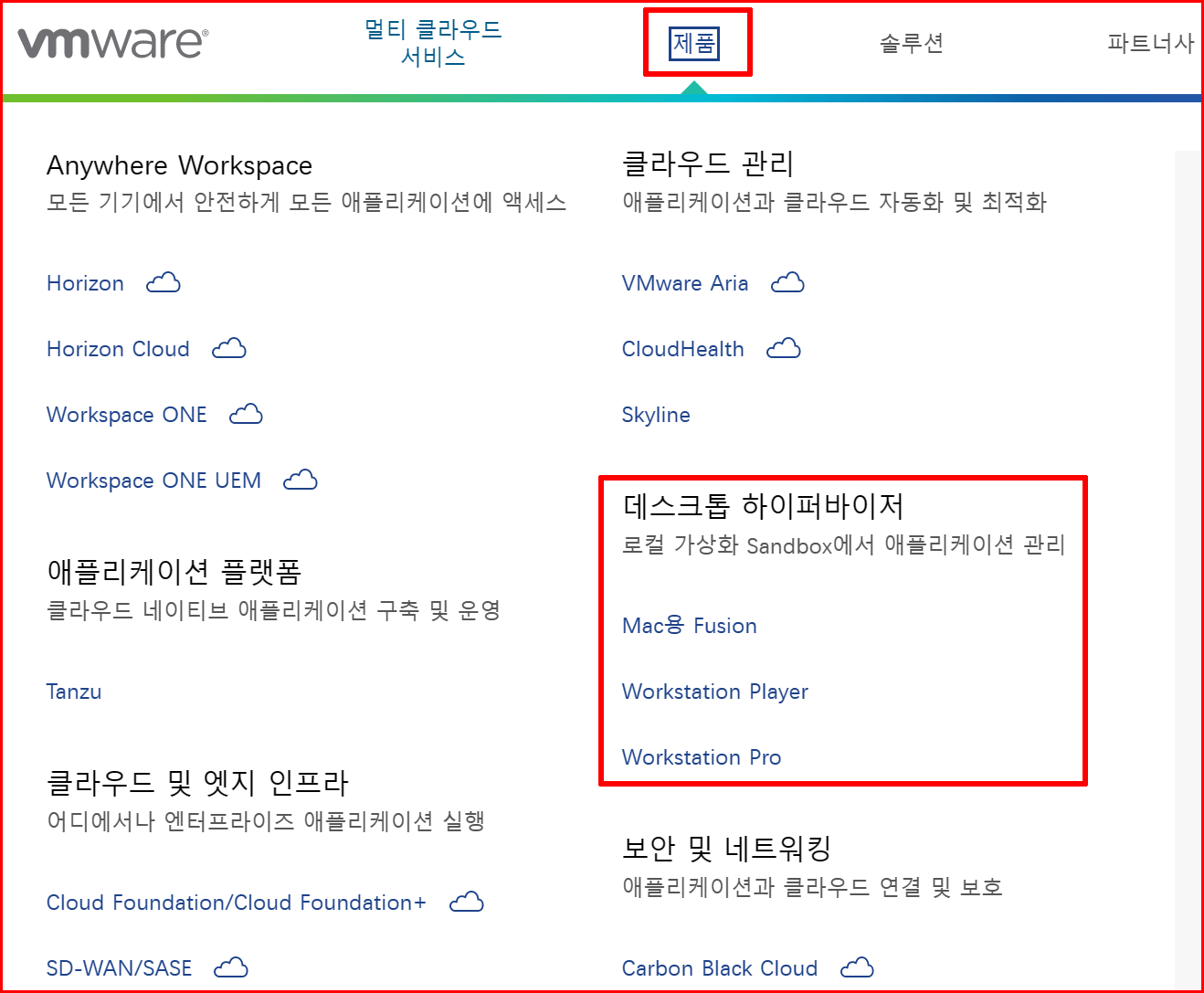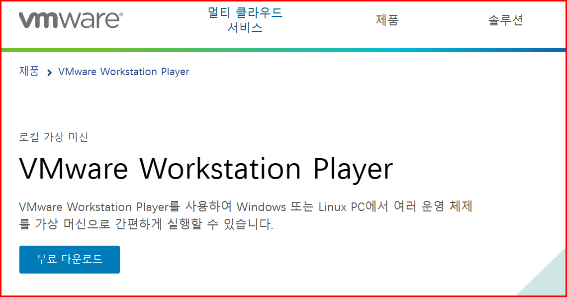 홈페이지에서 VMware Workstation Player는 무료로 다운로드 서비스를 제공합니다.