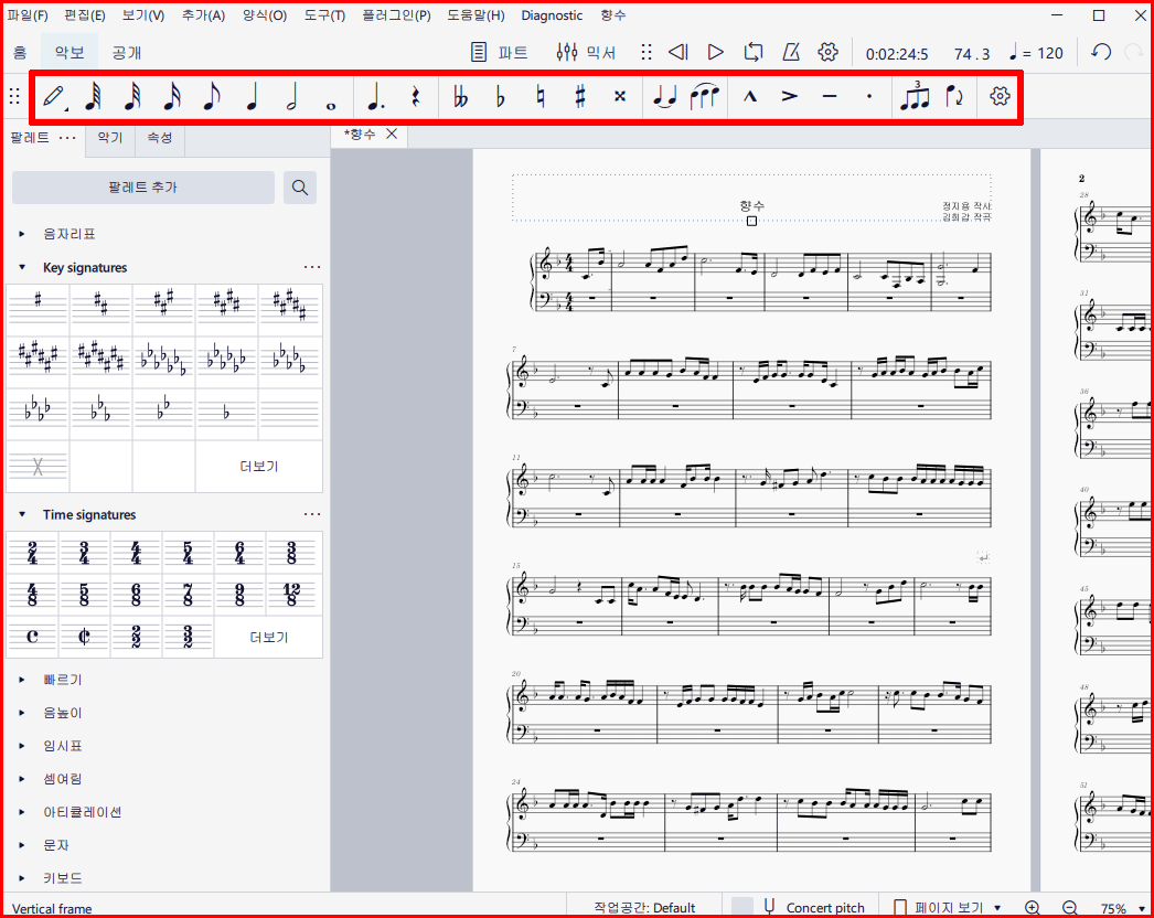 이와 같이 뮤즈스코어에는 악보를 작성하는 많은 기능을 갖추고 있습니다.