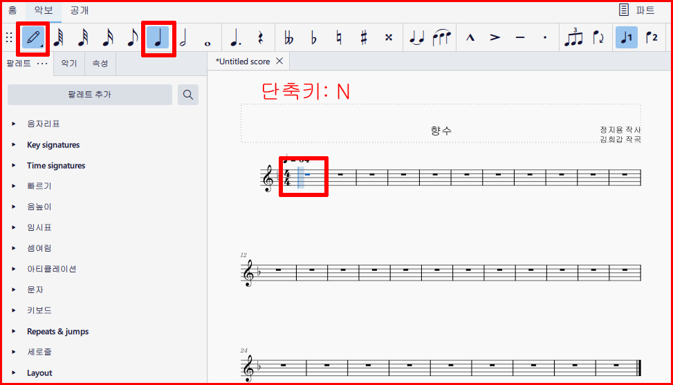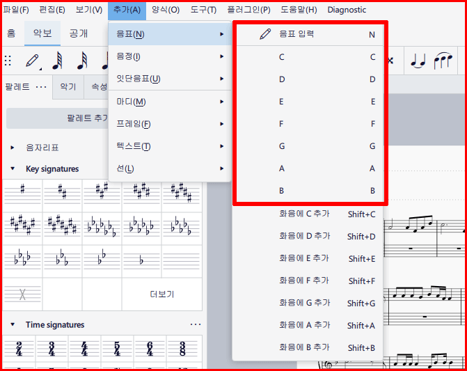 악보 입력에서 단축키 사용법