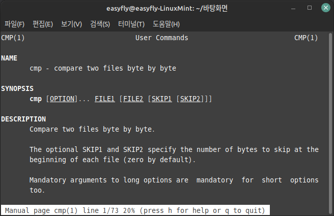 자세한 설명은 'man cmp'로 찾아서 사용합니다.