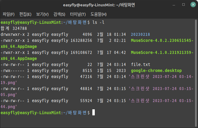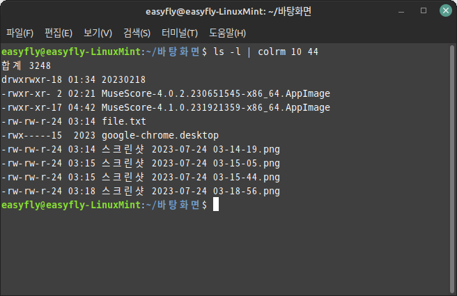 파일 리스트를 출력할 때, 'colrm 10 44'를 리다이렉트로 사용하면 다음과 같이 깨끗하게 볼 수 있습니다.