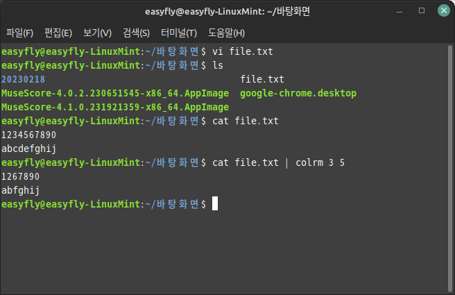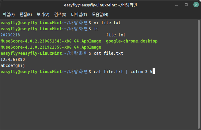 다음은 `colrm` 명령어의 기본적인 사용법입니다: