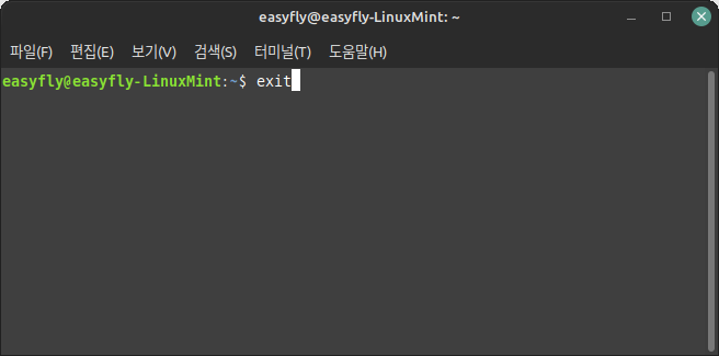 쉘 프롬프트에서 `exit`를 입력하면 현재의 쉘 세션 또는 터미널 창이 종료됩니다.