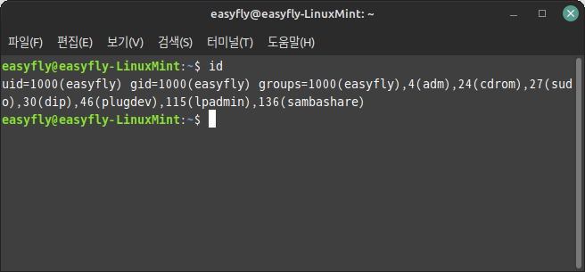 `id` 명령어는 사용자의 식별자(ID)와 그룹 식별자(GID) 그리고 해당 사용자가 속한 그룹의 정보를 출력하는 리눅스 명령어입니다.