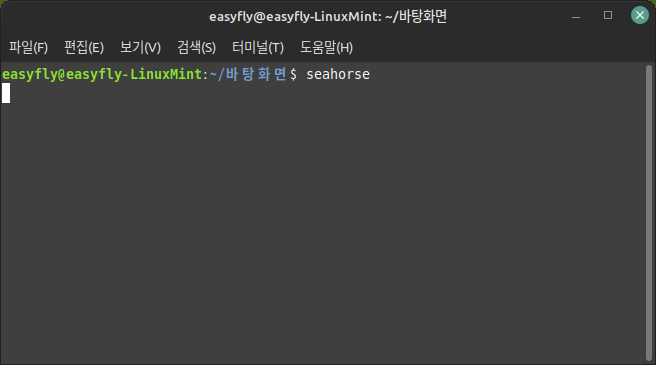 터미널을 이용해서 'seahorse'를 실행합니다.