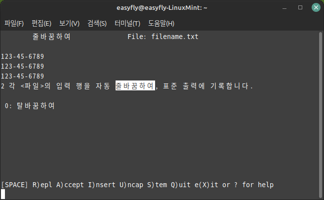 위 명령어를 사용하면 `filename.txt` 파일의 스펠링을 검사합니다.