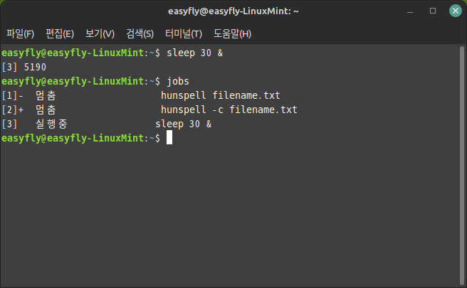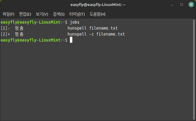 - 기본적으로 `jobs` 명령어를 입력하면 백그라운드 작업의 목록이 표시됩니다.