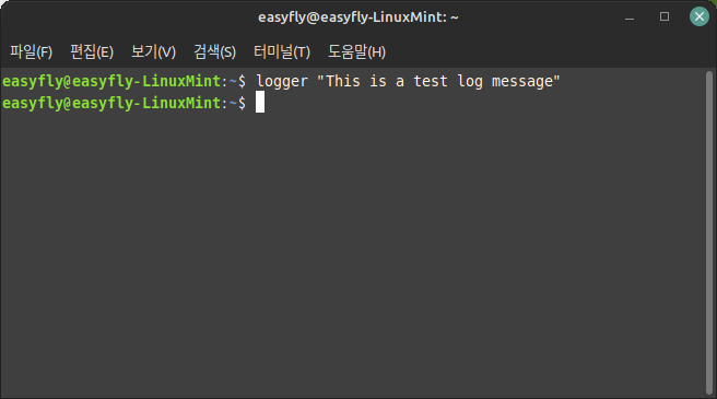 이 명령은 "This is a test log message"라는 메시지를 시스템 로그에 기록합니다.