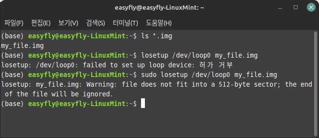 - `losetup` 명령어는 관리자 권한 (root)이 필요할 수 있습니다.