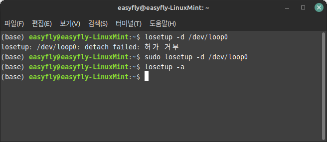 - 루프 디바이스를 해제하기 전에 해당 디바이스가 마운트되어 있지 않은지 확인해야 합니다.
