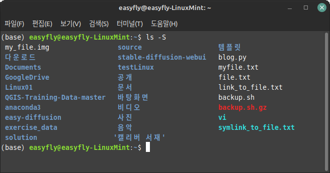 - `-S`: 파일 크기에 따라 정렬합니다.