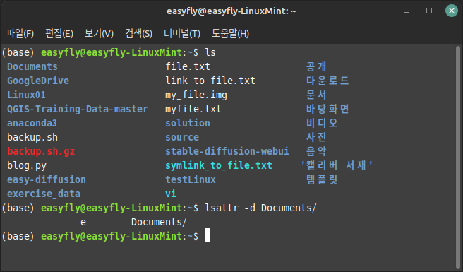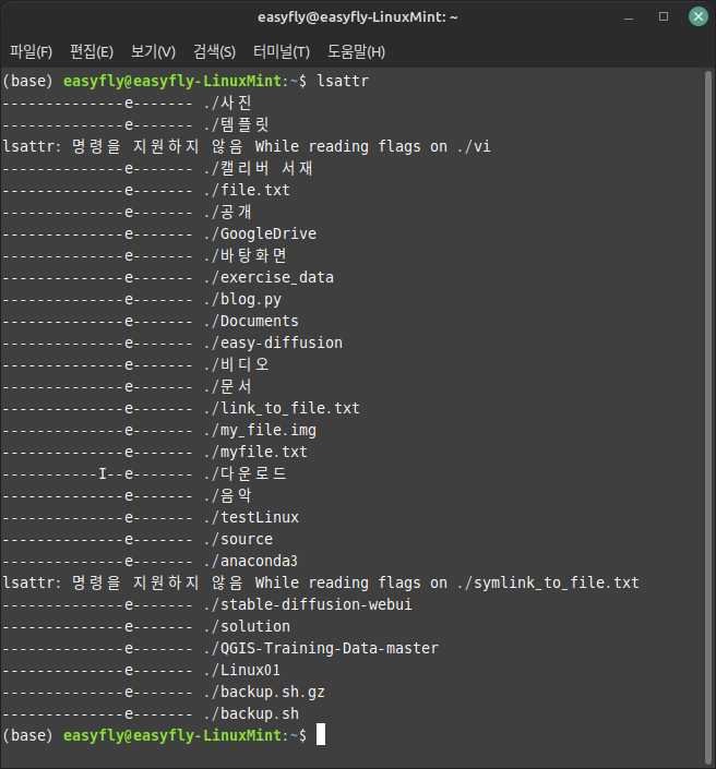 파일 시스템의 속성 보여 주기, lsattr