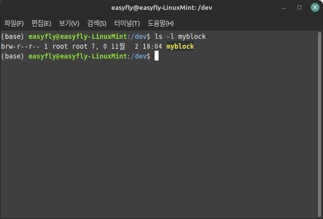 이 명령은 메이저 번호가 7이고 마이너 번호가 0인 블록 디바이스 myblock을 생성합니다.