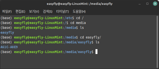 mount또는df -h명령어를 사용하여 현재 마운트된 파일 시스템을 확인합니다. 또는이 명령들은 마운트 된 파일 시스템과 사용 가능한 공간에 대한 정보를 제공합니다. USB 드라이브가 이미 마운트 되어 있다면 여기서 경로를 확인할 수 있습니다. df -hmount | grep /dev/sd- GUI 도구 사용: 일부 리눅스 배포판은 파일 매니저에 USB 드라이브를 자동으로 탐지하고 표시하는 GUI 도구를 포함하고 있습니다. 바탕화면에 USB 드라이브 아이콘이나 파일 매니저의 사이드바에서 직접 드라이브를 찾을 수 있습니다.