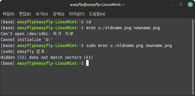 이 명령은 oldname.png 파일의 이름을 newname.png로 변경합니다. root 권한이 필요하면 'sudo'를 사용합니다.