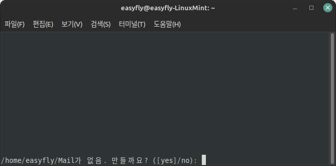 제 시스템에는 mutt가 없어서 'sudo apt install mutt'로 설치를 했습니다. 설치 후에 'mutt' 실행했더니 새로운 메일을 만드라는 메시지가 뜨면서 mutt가 시작되네요.