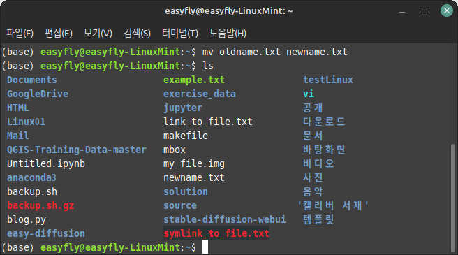 이 명령은 oldname.txt 파일의 이름을 newname.txt로 변경합니다.