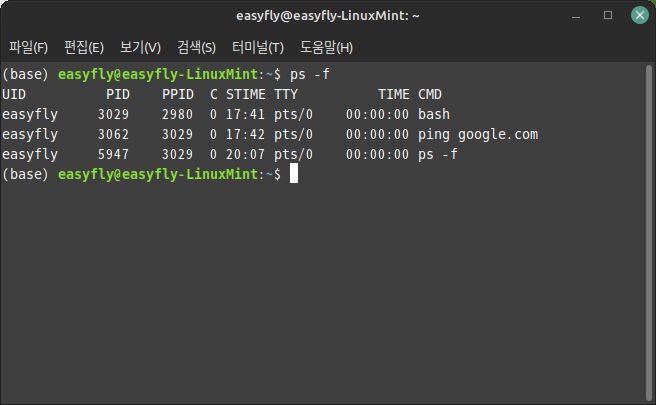 ps를 실행하면, 현재 쉘에서 실행 중인 프로세스들에 대한 정보를 보여줍니다.
