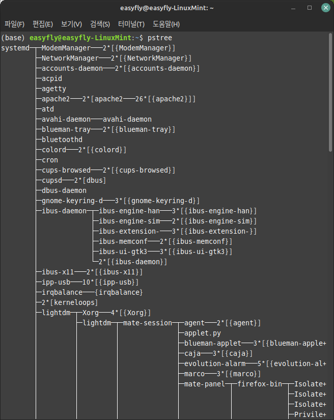 [리눅스 명령어] 프로세스 상관관계 알기, pstree