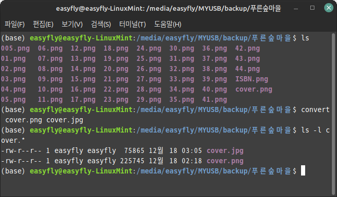 - 파일 포맷 변환: 예를 들어, JPEG 파일을 PNG로 변환하려면: