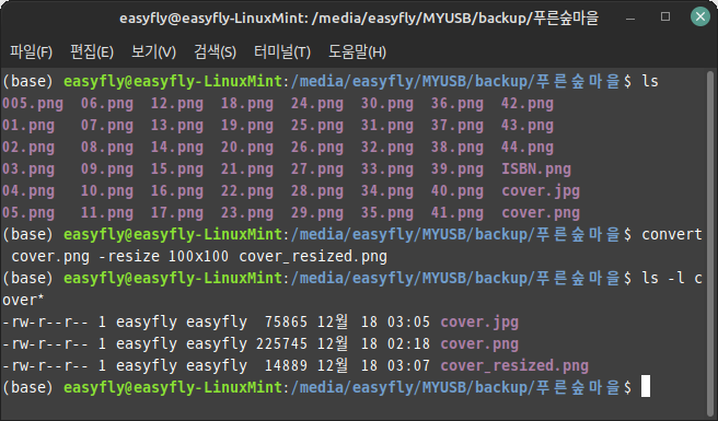 여기서convert cover.png -resize 100x100 cover_resized.png100x100은 변경하고 싶은 크기를 의미합니다.