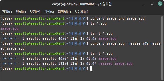 - 다른 포맷으로 변환: 예를 들어, PNG 이미지를 JPEG로 변환하려면: