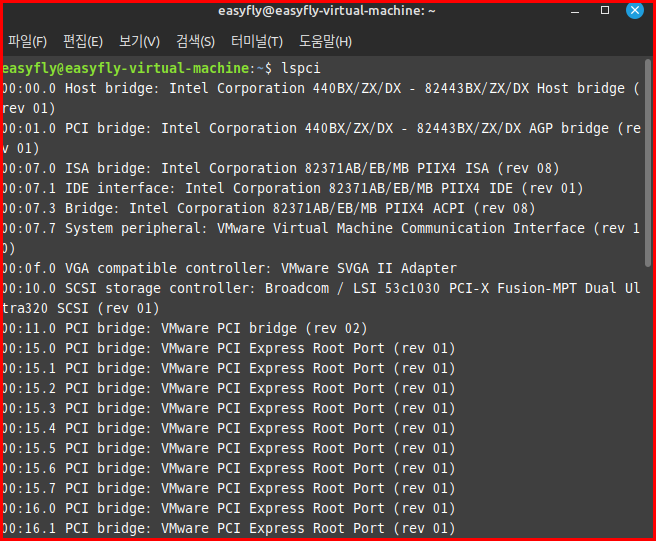 lspci: PCI 버스를 통해 연결된 모든 장치를 나열합니다. PCI(Peripheral Component Interconnect)는 컴퓨터의 머더보드에 장착되는 확장 카드를 연결하기 위한 표준 인터페이스입니다. 이 인터페이스는 다양한 종류의 시스템 확장 카드를 연결하는 데 사용되며, 네트워크 카드, 사운드 카드, 그래픽 카드 등과 같은 주변 장치를 컴퓨터에 추가할 수 있도록 해줍니다.