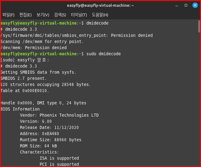 dmidecode: 시스템의 하드웨어 정보를 보여주는 툴로, BIOS, 시스템, CPU 등에 대한 정보를 알 수 있습니다. 이를 사용하여 시스템의 하드웨어 구성을 파악하고, 관련 문제를 해결하거나 시스템 업그레이드를 계획하는 데 도움을 받을 수 있습니다.