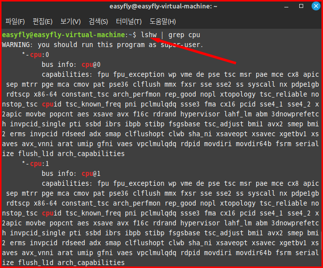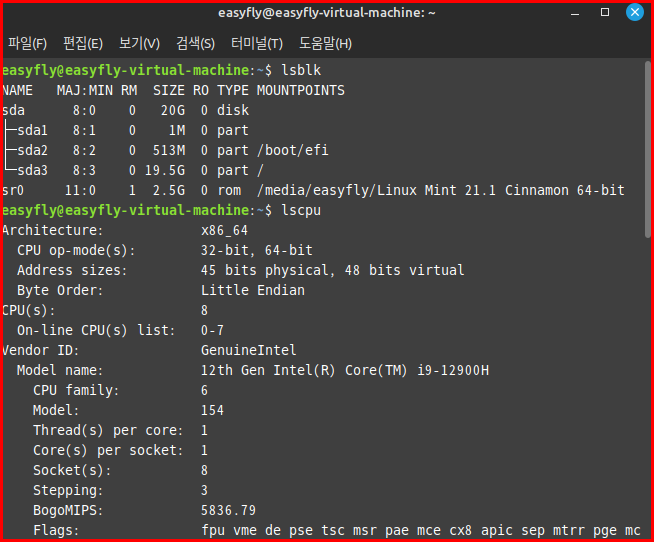 lscpu: CPU 관련 정보를 보여줍니다.