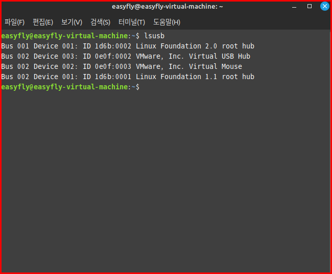 lsusb: USB 버스와 연결된 디바이스 정보를 보여줍니다.
