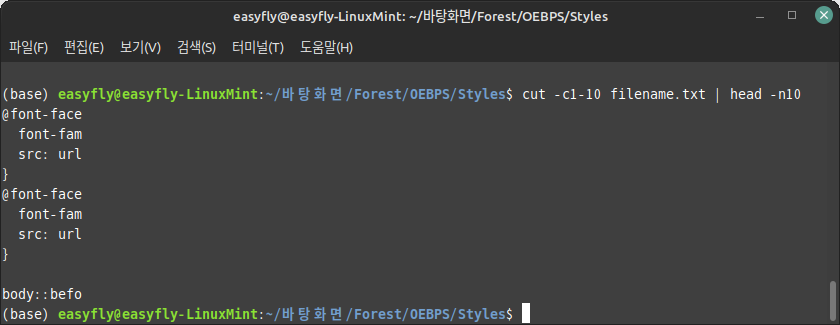 예를 들어, 각 줄의 처음부터 10번째 문자까지만 보고 싶다면 다음과 같이 명령어를 사용합니다.