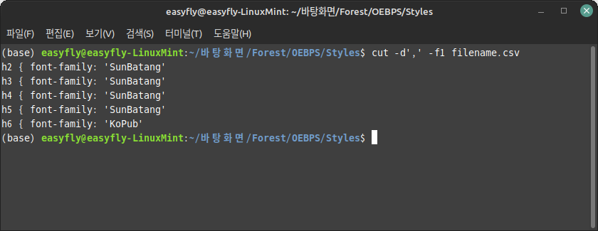 -d: 구분자를 지정합니다. 기본 구분자는 탭(tab)이지만, 쉼표(,), 콜론(:), 세미콜론(;) 등 다른 문자를 구분자로 지정할 수 있습니다.-f: 추출하고자 하는 필드의 번호를 지정합니다. 여러 필드를 선택하기 위해 쉼표로 구분된 숫자 리스트를 사용할 수 있습니다.