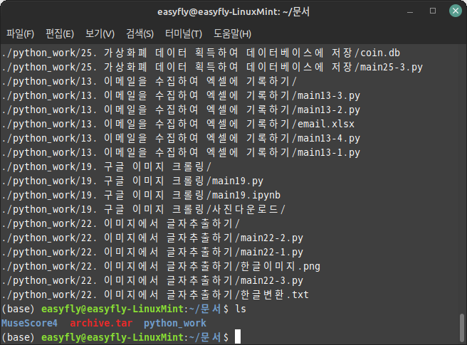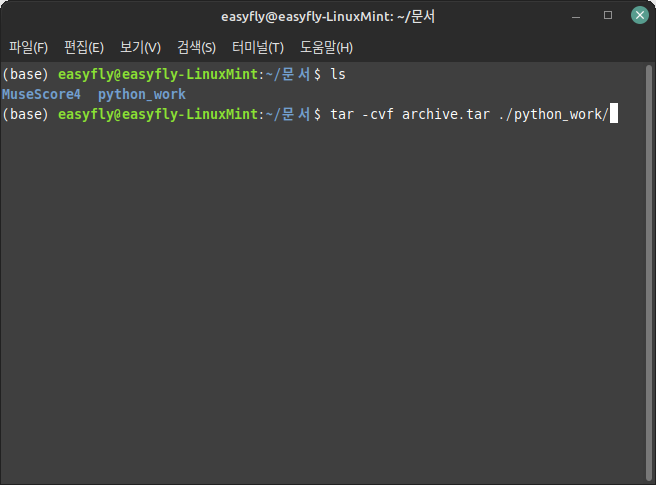 -c: 새로운 아카이브를 생성합니다.-x: 아카이브에서 파일을 추출합니다.-t: 아카이브에 포함된 파일 목록을 표시합니다.-f: 파일명을 사용합니다. 대부분의 경우 이 옵션은 필수입니다.-v: 자세한 정보를 출력합니다(Verbose).-z:gzip을 사용하여 압축하거나 압축 해제합니다.-j:bzip2를 사용하여 압축하거나 압축 해제합니다.-J:xz를 사용하여 압축하거나 압축 해제합니다.