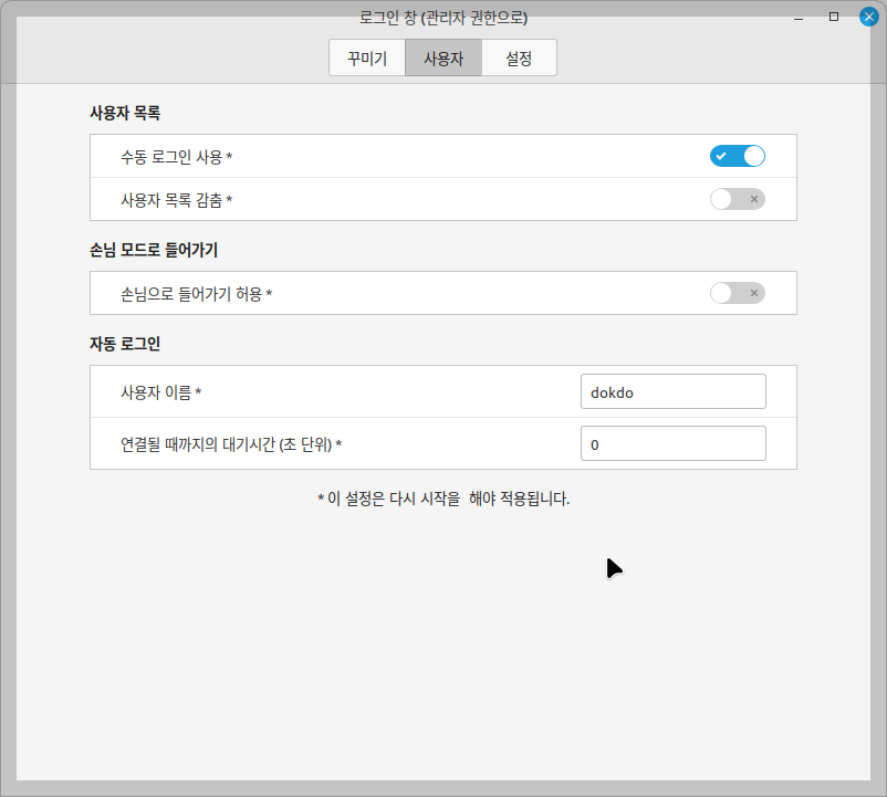리눅스민트에서 로그인 설정