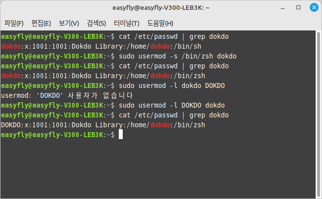 usermod -s /bin/zsh username - 사용자의 로그인 이름 변경: