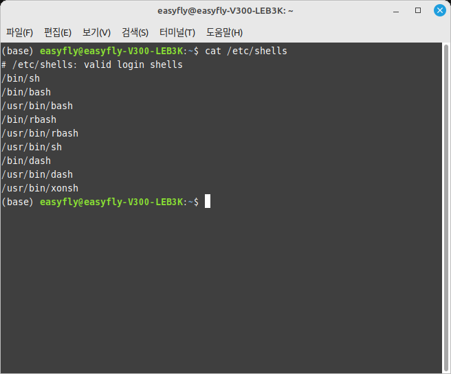 리눅스 시스템에서 사용 가능한 셸의 목록을 확인하려면, 다음 명령어를 사용합니다: