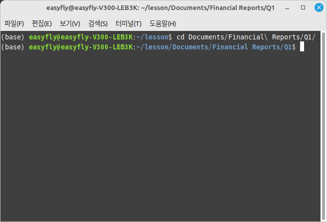 여기서 \는 디렉터리 이름에 포함된 공백을 이스케이프하여, cd 명령이 올바른 경로로 이동하도록 돕습니다.