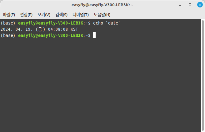 이 명령은 date 명령의 출력을 echo 명령에 전달하여, 현재 날짜와 시간을 출력합니다.