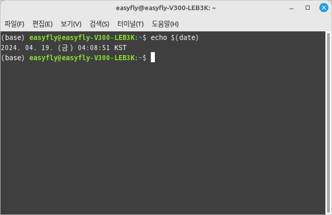 이것도 date 명령의 출력을 echo 명령에 전달하는 것과 같은 작업을 수행하지만, $()을 사용하여 치환을 수행합니다. 이 형식은 중첩이 가능하여 더 복잡한 치환을 할 수 있습니다.