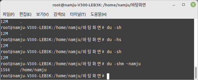 - $ du -shm ~namju
