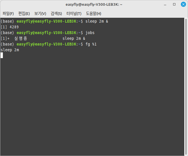 - 백그라운드에서 실행 중인 명령을 포그라운드로 가져오기