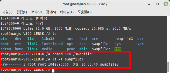 - 스왑 파일의 허가권 설정하기