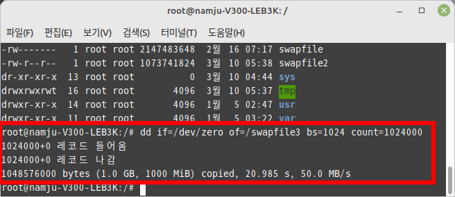 스왑 파일 생성하기