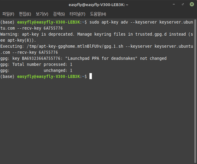 다음으로, QGIS 저장소의 키를 추가합니다. 아래 명령어를 입력하여 키를 추가합니다.