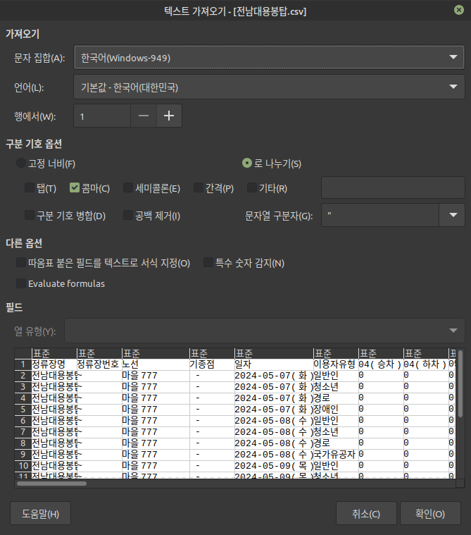 데이터를 내려받는 중에 일이 있어 처리하고 왔더니 내려받았군요. 리눅스에서 액셀 파일 처리는 '리브로 오피스'를 활용합니다. 물론 CSV 파일은 QGIS에서 바로 불러올 수 있습니다. 만약 액셀 확장자로 있다면 변환 과정을 거칩니다.
