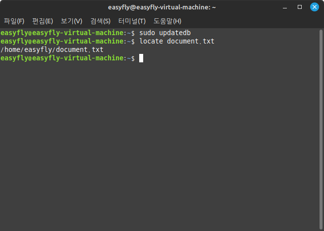 이 명령어는 /home 디렉터리에서 document.txt 파일을 찾습니다.