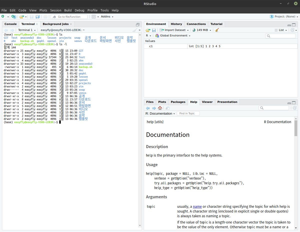 RStudio의 Console과 Terminal 패널은 각각 다른 목적을 위해 사용됩니다. Console 패널은 R 코드를 실행하고 결과를 확인하는 데 사용되며, Terminal 패널은 시스템 명령어를 실행하고 파일 시스템을 관리하는 데 사용됩니다. 이 두 패널을 활용하여 RStudio 내에서 다양한 작업을 효율적으로 수행할 수 있습니다.