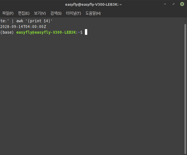 - awk 명령어를 사용하여 필터링된 줄에서 실제 만료 일자 값만 추출합니다.