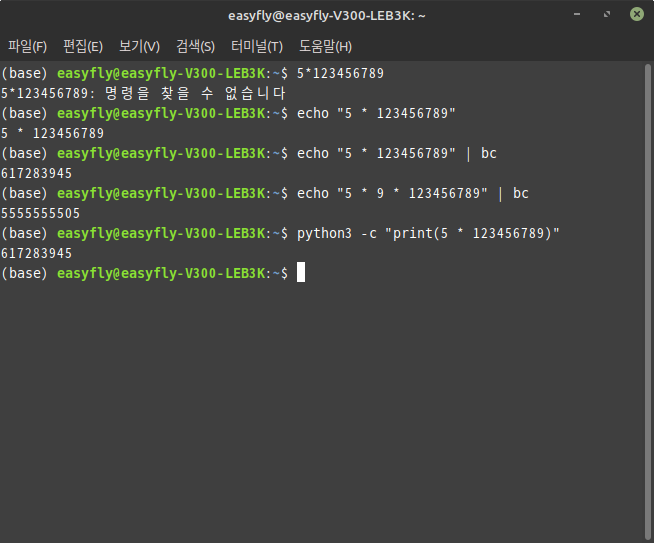 터미널에서 * 연산자를 사용하여 곱셈을 수행하면 명령어 입력으로 봅니다. 대신에, 연산을 수행하려면 bc와 같은 계산기를 사용해야 합니다.